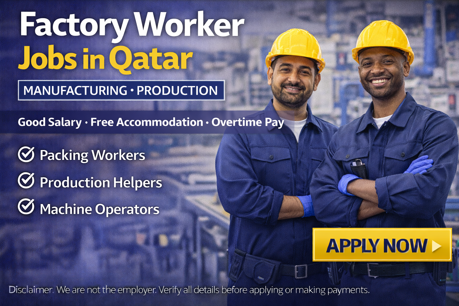 If you are searching for a stable overseas job with good income and long-term benefits, Factory Worker Jobs in Qatar are now open for international candidates. Qatar’s industrial and manufacturing sector is expanding quickly with new factories, warehouses, packaging plants, and food production units opening every year. Because of this growth, companies urgently require factory workers, helpers, packing staff, and general laborers to manage daily operations.
