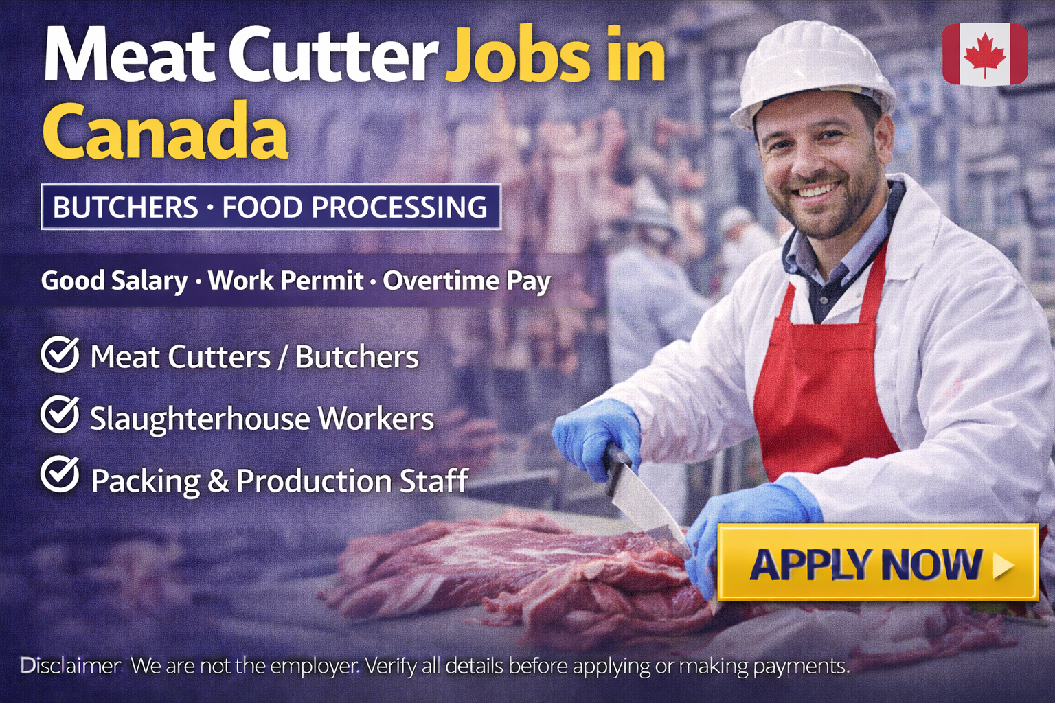 If you are searching for a stable overseas job with good salary, legal work permits, and long-term career opportunities, Meat Cutter Jobs in Canada are now hiring for multiple positions. Canada’s food processing and meat production industry is growing rapidly due to increasing domestic demand and exports. Supermarkets, slaughterhouses, food factories, and meat processing plants require skilled and semi-skilled workers to manage daily production.